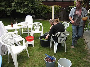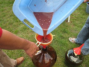 | Endlich war es so weit. Der Wein musste abgezogen werden. Eine willkommene Abwechslung für einen gemütlichen Sonntag. | |