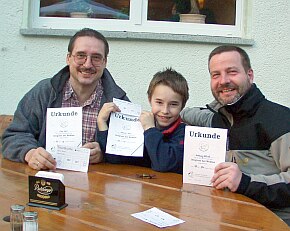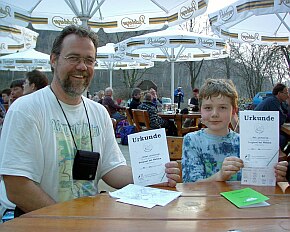 | Die Schwedenlöcher sind geschafft. Unser letzter Kontrollpunkt an der Bastei. | Am Ziel, Pension "Am Nationalpark" Wehlen lagen schon unsere Urkunden bereit. Entsprechend der eingesammelten Stempel wurde die absolvierte Strecke eingetragen. |