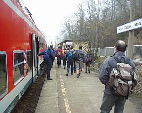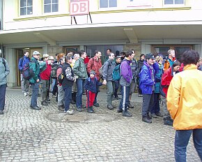 | Am Bahnhof in Wehlen wurde sich erst mal angestellt und die Start- und Stempelkarten für den Nachweis der Wanderung ausgefüllt. Da waren schon eine ganze Menge anderer Wanderer vor uns auf dem Weg. Wir erhielten die Nummern 258, 259 und 260. |