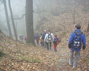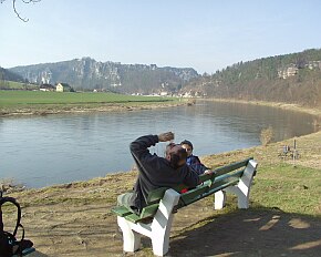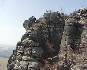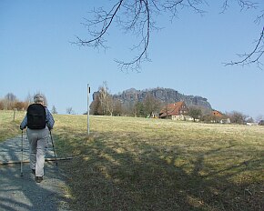 | Unser nächster Orientierungspunkt. Der Pfaffenstein. | Am "K2" war viel los. Eine Mittagspause hatten auch wir uns verdient. Schade, dass an so einem Tag die Gaststätten noch nicht geöffnet hatten. |
