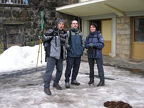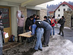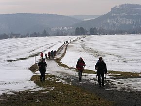 25. März 2006, 6:30 Uhr, S-Bahnhof Stadt Wehlen, los geht es zum Bergtest. Diesmal sind unsere Wanderprofis Monika (Jambo-Mama) und Jörg mitgekommen. Am Bahnhof in Stadt Wehlen wurden erst mal die Start- und Stempelkarten für den Nachweis der Wanderung ausgefasst. Zeitiges Kommen sichert gute Plätze. Auf Grund des langen, schneereichen und kalten Winters wurde die Strecke vereinfacht. Viele der Gipfel, wie z.B. der Lielienstein, waren nicht begehbar. Damit war die Strecke zwar kürzer aber nicht unbedingt einfacher zu gehen. Der zum Teil tiefe Schnee bereitete beim Gehen doch einige Mühe. |