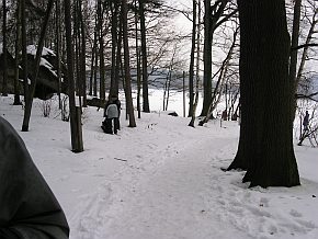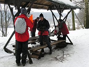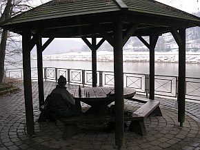 | Das Gehen im Schnee hatte doch einige Kraft gekostet, die Schwedenlöcher nicht begehbar und die Kniee ...... also wählten wir diesmal die kurze Variante und genossen die letzten Wegzehrungen mit Blick auf die Elbe. Monika und Jörg sind noch zur Bastei hinauf um den letzten Stempel zu suchen. | ![]() |