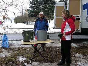 | An der Teestelle. Hier gab es kostenlos Kräutertee und leckere Schmalzstullen. Die richtige Motivation für die weitere Wegstrecke. |