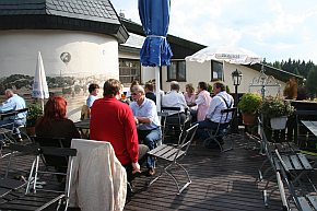 | Die ganz Ausgeschlafenen erstiegen noch einmal den Kuhberg. Zu unserem Erstaunen war die Gastställe leer und der Kellner schaltete extra für uns wieder das Licht ein. | |