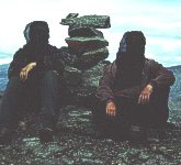 Porträt mit Steinhaufen (Wegmarkierung) und Moskitonetzen. |