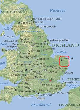 | Markante Punkte in der Landschaft der Norfolk Broads sind die Windmühlen. Sie dienten im 19. Jahrhundert der Entwässerung. Einige sind als Museum restauriert und im Sommer zu besichtigen. | ![]() |