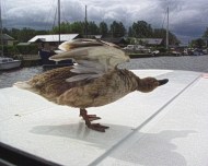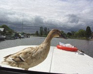 | Unsere ständigen Begleiter waren die Enten. (Sehr an Menschen und Boote gewöhnt.) Sie schlichen sich immer am Fenster vorbei, kontrollierten ob gerade keiner hinschaut und ..... kackten das Boot voll. |