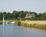 | Die Landschaft der Norfolk Broads wird aus vielen Seen, Flüssen und Kanälen gebildet. Bewaldete Teile, und Seen lösen sich mit recht eintönigem Marschland ab. Der Wechsel zwischen Idylle und kleine reizvolle Ortschaften bereichern die Bootsfahrt. |
