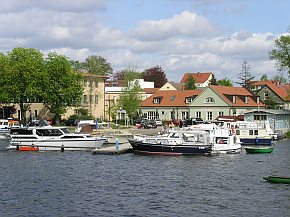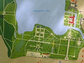 | Rheinsberg: Erste Siedlungszeugnisse gehen auf die Remusinsel im Grienericksee zurück. Während der frühdeutschen Besiedlung wurde eine neue Burganlage am östlichen Seeufer errichtet. Burg und Stadt im 13./14. Jahrhundert als Grenzfeste gegen mecklenburgische Ansprüche ausgebaut. 1734 kaufte der "Soldatenkönig" Friedrich Wilhelm I. Rheinsberg für seinen Sohn Friedrich, der in Neuruppin ein Regiment kommandierte. Mit dem Umbau des Schlosses entwickelte sich Rheinsberg in der Folgezeit von einer verschlafenen Ackerbürgerstadt zur kleinen barocken Residenz. von 1736 bis 1740 philosophierte und musizierte hier der Kronprinz im Kreise von Gelehrten, Künstlern und Musikern. Nach dem großen Brand 1740, erfolgte der Wiederaufbau der Stadt nach Plänen von Knobelsdorff unter Aufgabe der mittelalterlichen Stadtstruktur. Die 1762 gegründete Fayencemanufaktur entwickelte sich später neben einer Magdeburger Produktionsstätte zur wichtigsten Steingutmanufaktur Preußens. ( www.rheinsberg.de ) |