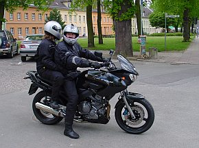 | Geschafft - im "Goldenen Anker" das Wiedersehen mit Carola und Nager. Sie kamen mit dem neuen Motorrad, was unbedingt besichtigt werden musste. |