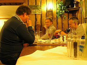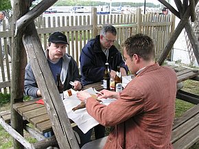 | Zurück am Ausgangspunkt, "Gast und Logierhaus Mischke" machten wir es uns im Gartenlokal gemütlich. Bei Bier, frisch gebackenem Brot, Kaffee, Kuchen, Kesselgulasch und Skat spielen verging der Tag ..... der Abend .... die Nacht ...... |