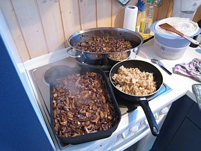 | Die Menge an Pilzen mussten dann auch gebraten werden. Gar nicht so einfach ... die Logistik. |