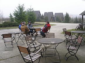 | Hier gibt es mehrere Ferienhäuser, wir bewohnten "Paulina". 6 Schlafzimmer, 2 Duschbäder, 1Wohnraum mit Esstisch für 12 Personen, 1 Kaminraum mit gemütlicher Sitzgelegenheit, Küche mit Esstisch. Das Ausleihen von Fahrrädern ist möglich. | Zum Haus gehört ein Grill- und Lagerfeuerplatz. |