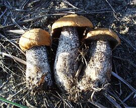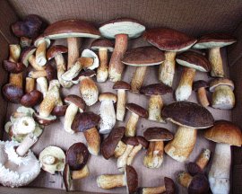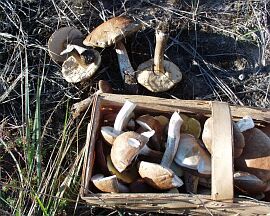 Und schon ist es wieder November, diesmal im Jahre 2003. Nach dem Heißen und trockenen Sommer und dem darauf folgenden kurzen Herbst haben wir es einfach noch einmal probiert. Die Erwartungen waren nicht sehr hoch, aber die Vielfalt war schon erstaunlich, wenn auch nur ein Exemplar von jeder Sorte. Falscher Pfifferling (häufig), Kiefernsteinpilz, Marone, Fliegenpilz, Samtfusskrempling, Birkenporling (häufig), Zunderschwamm und ...... Krause Glucke. Da war das Mittagessen doch gesichert. |