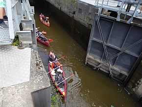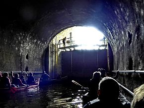 | Umsetztag nach Balduinstein, Paddeln durch den Schiffstunnel Weilburg. | |