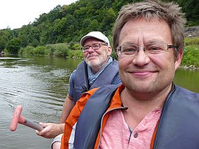 | Die Paddeltour ging von Weilburg, durch den Schiffstunnel bis Führfurt. Dort wurden die Boote abgelegt und mit der Bahn ging es zurück nach Weilburg. Zum nächsten Hotel, LahnBlich, in Balduinstein ging es mit den Autos. Sehr beeindruckend war der Blick vom Hotel über die Lahn nach Barduinstein. | |