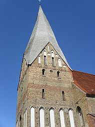 | Die dreischiffige Hallenkirche der Stiftskirche St. Elisabeth aus Backstein mit Binnenchor, Chorumgang mit Kapellenkranz und vorgesetztem W-Turm, wurde in mehreren Etappen errichtet und um 1400 vollendet. Bemerkenswerte Teile im Innern sind der spätgotische Flügelaltar (1503), die Renaissancekanzel (1617), sowie die Sonnenuhr an der Südseite (1785). | |