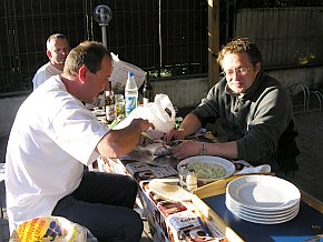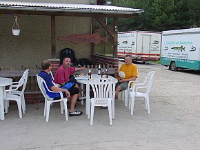 | Steffen fuhr am heutigen Tage mit dem Auto voraus nach Güstrow um ein Quartier zu suchen. Eine nette kleine Pension. Hier durften wir am Abend auch Grillen. Steffen hatte sich etwas Besonderen einfallen lassen - Forelle. | |