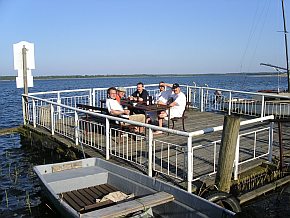 | 5km vor dem Ziel ereilte uns die erste Panne. Doch Nager hat es mit mehrmaligem Aufpumpen des Hinterrades bis zur Unterkunft geschafft. Ulli, unser heutiger Quartiermeister, hat eine schöne Pension in Nossentin, direkt am Jabelschen See (Fleesensee) gelegen, gebucht. Hier war nach der Fahrragreparatur und dem "Frischen" das Anbaden angesagt. Nur die Mutigen ...... Den Abend verbrachten wir mit Karten-, Tourstudium und ... Grillen. | |