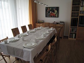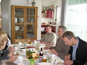 Ein Ausflug in Berlin mit dem Schiff. Die Börd's sind extra aus Paderborn eingeflogen um unsere schöne Hauptstadt zu besuchen. Ein "kleiner" Snack bei Ludi, dann die Schiffspassage, Bowling, Besuch der Hackeschen Höfe ein gemütliches Essen beim Spanier und ein Absacker im Irish Pub. Dann war der Tag auch rum. Der neue Esstisch sollte bei dieser Gelegenheit auch gleich engeweiht werden. |