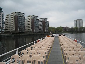 | Endlich ging die Schiffstour los. Von Charlottenburg nach Mitte. Vorbei unter anderem am Bundeskanzleramt, Hauptbahnhof, Palast der Republik, Jannowitzbrücke ... | |