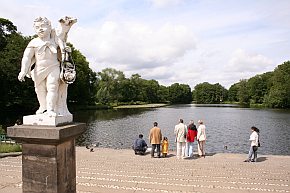 | Der 55ha große Schlossgarten ist das bedeutendste historische Gartendenkmal Berlins. Mit seiner Anlage wurde 1697 nach Plänen Simeon Godeaus, ein Schüler des französischen Gartenarchitekten Andre Le Notre, begonnen. Charakteristisch für den Charlottenburger Barockgarten waren die vom Mittelsaal des Schlosses ausgehenden Schneisen nach Spandau, Tegel und Niederschönhausen, das reich mit Buchsbaumornamenten geschmückten Parterre und das nach Norden ausgerichtete Alleensystem. Dieser Barockgarten entstand bis 1786. Er wurde im Laufe des 19. Jahrhunderts durch A. Eyserbeck und J. P. Lenne zu einem stimmungsvollen englischen Garten umgestaltet. |