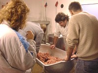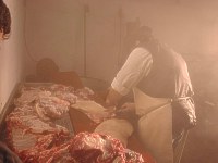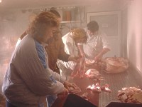 | Hier, in Ollis Schlachthaus, werden | die herrlichsten Würste gefertigt. | |