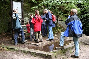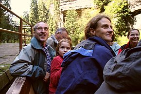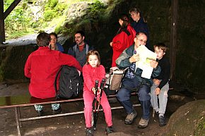 | Das Ziel unserer Wanderung waren die Edmunds- und Wilde Klamm in der Böhmischen Schweiz, im Tschechischen. Nach dem Grenzübertritt in Schmilka / Hrensko, an den vielen Kaufständen vorbei, ging es dann links den gelben Weg hinauf. Über Janov und Hajenky wieder hinab zum Flüsschen Kamenice. Von hier fuhren wir dann mit dem Boot die wilde Klamm hinauf und die "Schlaffeier" fuhren diese auch wieder hinunter. Ein Stück Fußweg und die Edmunsklamm mit dem Boot weiter. Dann zu Fuß zurück. | |