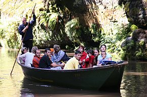 | Die Fahrt durch die Klammen ist in beiden Richtungen in zwei Etappen – in der Edmundsklamm und in der Wilden Klamm – möglich. Die Klammen sind nur durch die Kahnfahrt zugänglich. Sie haben steile, oft senkrechte Wände, die 50-150 m hoch sind. In den Felsentürme kann man, mit etwas Fantasie, interessante Formen (Die Felsenfamilie, der Wächter ua.) entdecken. Der Fährmann treibt das Schiff mit der Stange, gleich wie in der Zeit der Entstehung dieser Attraktion. Im Verlauf der Schifffahrt gibt er die Erklärung über die Geschichte und beschreibt vielfältige Felsengebilde. | |