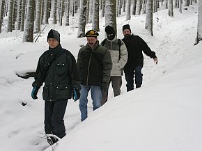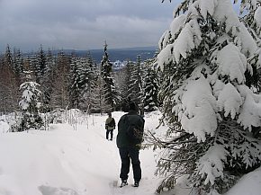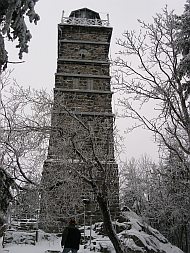 Von dort aus die gelbe Markierung, dann den grauen bis zum grünen Weg. Rast in einer kleinen Hütte mit Glühwein, Tee, diverse Leckereien und die Entscheidung doch zum Turm zu gehen. Wir wollten die 1000m Höhe unbedingt knacken. Von hier aus hinauf zum Turm "Tisovsky Vrch" erst grüner , dann gelber Weg. Doch leider wurden es nur 977m, da der Turm geschlossen war. (Die Aussichtsplattform ist in 1000m Höhe.) Zurück weiter den gelben Weg bis zur Hütte zurück und grün nach Nejdek. Im Hotel "Schöne Aussicht" war dann Getränke- und Essenfassen angesagt. Im Dunkeln ging es dann durch den Wald (gelber Weg) zurück nach Nejdek und wieder zur Pension. |
