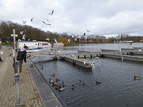 Uferpromenade mit Anlegestellen der Fahrgastschiffer, Restaurants und Cafés. Die alten, teils schilfgedeckten Bootshäuser