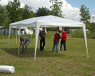 | Unser alter Pavillon wurde immer kleiner. Deshalb musste ein Neuer her. Hier ist er. Der Aufbau war gar nicht so einfach. |