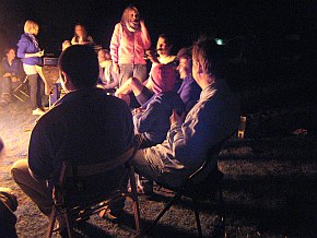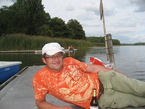 | Camp at the Woblitzsee - wonderfully. A lot of people has come again. The first camped already couple of days rather on our home place. Fine weather, so the weekend can start. The pavilion in the middle -- is our home. |